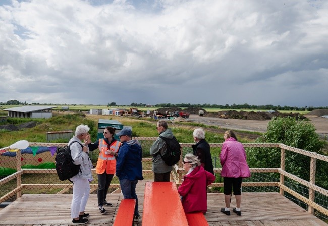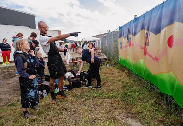 Als Gemeinschaftskunstwerk zauberten die Gäste unter Anleitung von Graffiti-Künstlern den aktuellen Trassenverlauf auf eine große Plane. Das Ergebnis kann künftig von Besuchergruppen auf dem Gelände des Infozentrums bewundert werden.