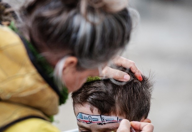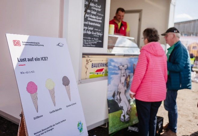 Von der Fotobox vor Bahnkulisse über Kinderschminken bis hin zum Bobbycar-Rennen “ICE vs. Regio” war für reichlich Unterhaltung gesorgt. Darüber hinaus konnten DB-Warnwesten individuell gestaltet und anschließend mit nach Hause genommen werden. Für das leibliche Wohl war mit Kaffee, Kuchen, Brezeln, Erfrischungsgetränken sowie schwarz-rot-goldenem EM-Eis gesorgt.