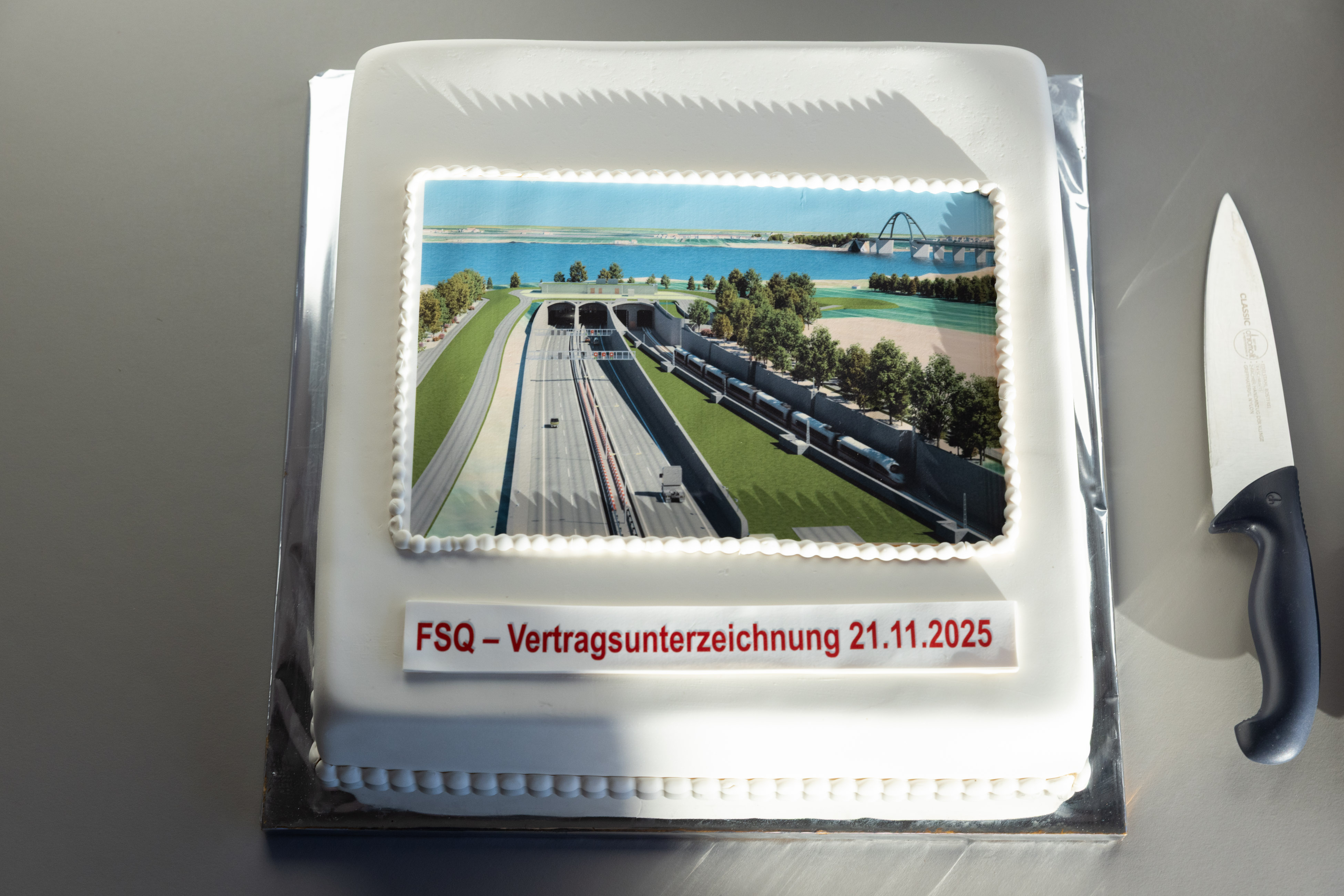 Die Tinte ist trocken: DB InfraGO und DEGES binden Bauunternehmen für den Bau des neuen Fehmarnsund-Tunnels. Dieses Bauwerk ist ein zentraler Baustein der deutschen Schienenanbindung für die neue feste Fehmarnbeltquerung. Die feierliche Unterzeichnung fand über den Dächern Hamburgs im Kallmorgen Tower statt. Die Besonderheit im Projekt ist die Allianz aus Baufirmen und Vorhabenträgern. Die ausführenden Baufirmen werden bereits in die Planungsphase eingebunden, so dass der Übergang von der Projektplanung in die Bauausführung deutlich effizienter und partnerschaftlicher gelingen kann. Für den kombinierten Tunnel für Schiene und Straße sind die DB InfraGO als auch die DEGES Vorhabenträger.