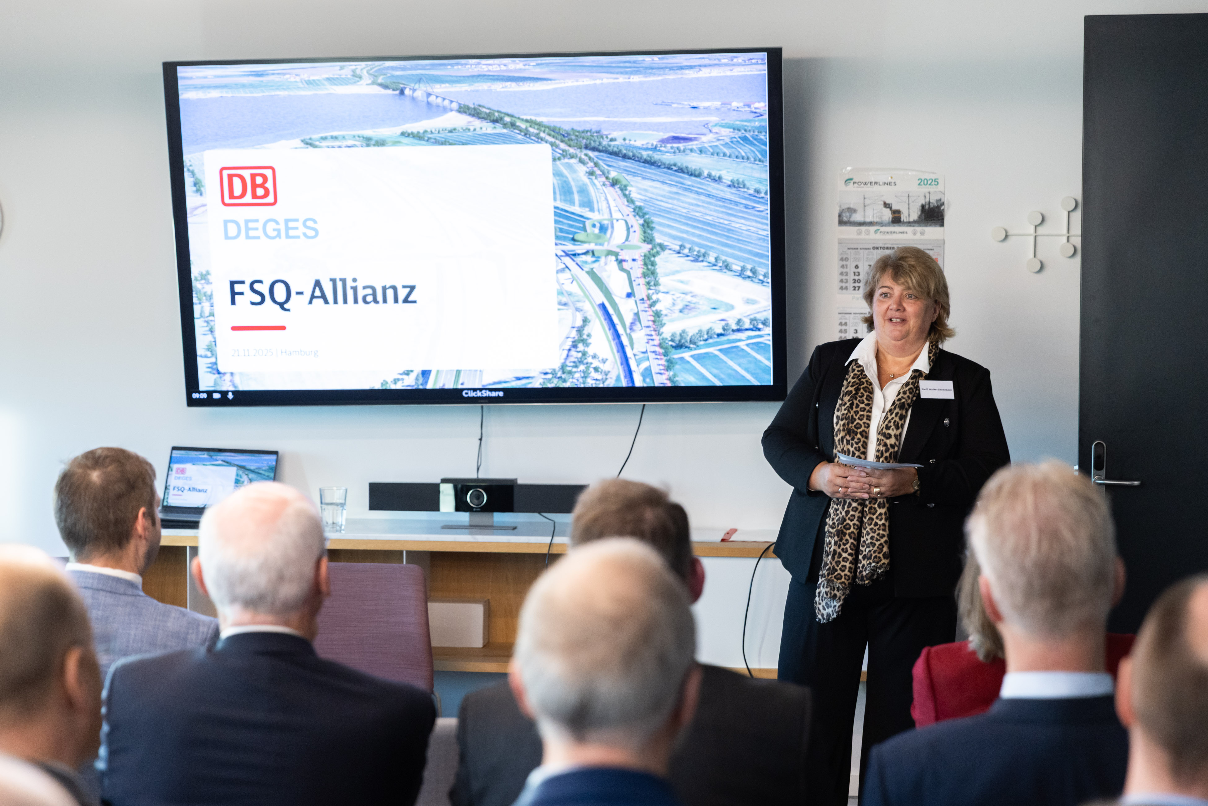 Ute Plambeck, Konzernbevollmächtigte der Deutschen Bahn für Hamburg und Schleswig-Holstein: „Der heutige Schulterschluss mit der Baubranche ist ein zentraler Schritt in Richtung Baustart am Fehmarnsund. Wir sind sehr glücklich, extrem leistungsstarke Partner für den komplexen Bau in der Ostsee gefunden zu haben. Die heutigen Unterschriften sind auch ein Bekenntnis für die neue europäische Querung, die uns alle antreibt und anspornt. Fehmarnbelt, das ist der neue Schienen-Logistik-Weg von Oslo über Kopenhagen und Hamburg nach Palermo. Wir versprechen uns auch mit Blick auf den Hamburger Hafen wichtige wirtschaftliche Impulse – für Deutschland und Europa.“