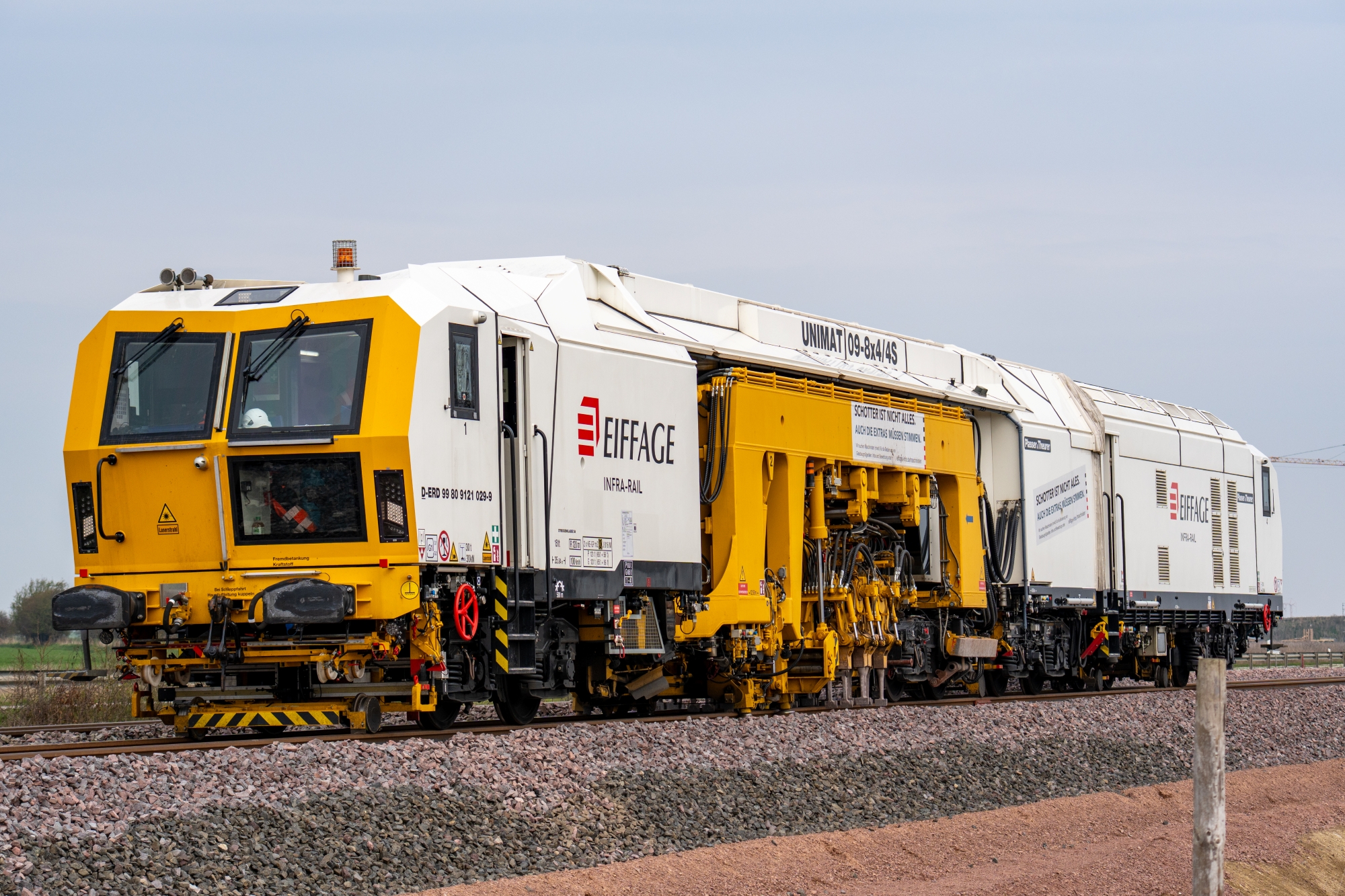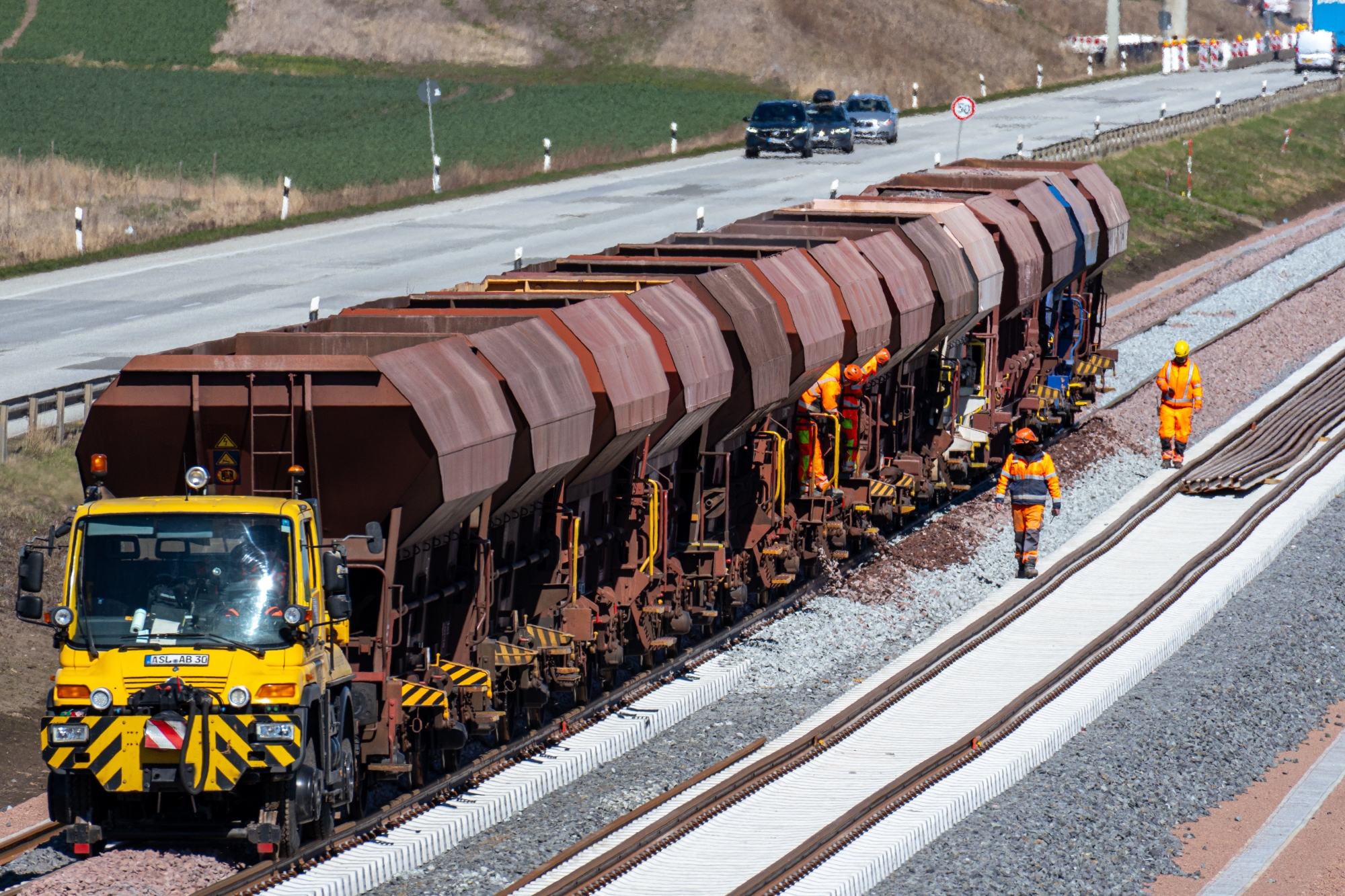 - Der neue Schotter wird über die Schiene antransportiert: von Maschen über Lübeck, unser Baugleis und die Fehmarnsundbrücke bis zum Einsatzort auf der Sonneninsel.
